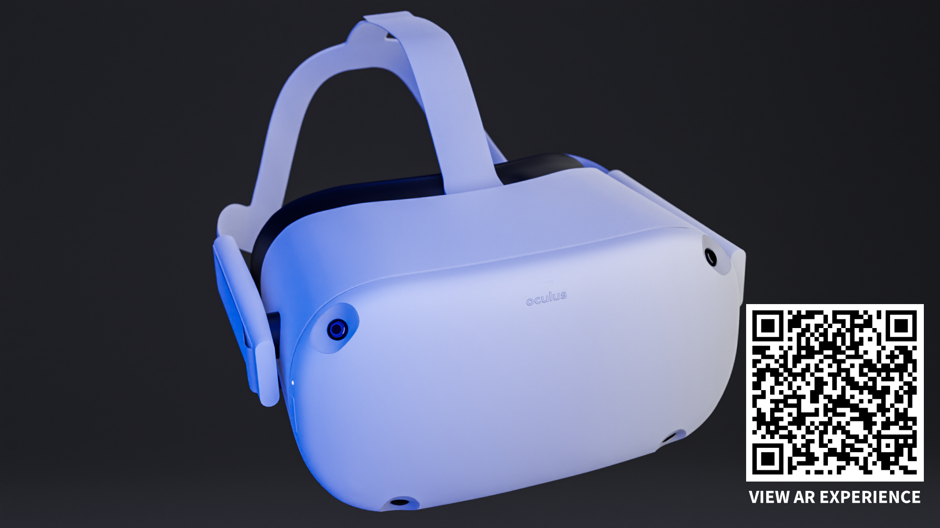 Using Augmented Reality with eCommerce is a innovative way of marketing physical products when physical products are not available to the customer. In this example the customer can see the Oculus Quest 1 VR headset in their own environment.
