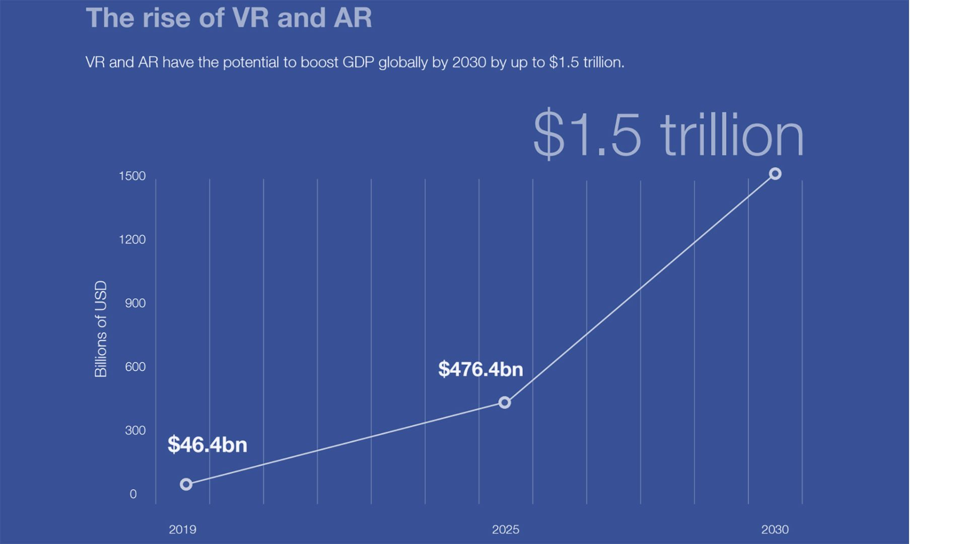 The global augmented reality (AR), virtual reality (VR), and mixed reality (MR) market is forecast to reach 30.7 billion U.S. dollars in 2021, rising to close to 300 billion U.S. dollars by 2024. It is envisaged that the Industry will be worth well over a trillion dollars in the next 10 years.